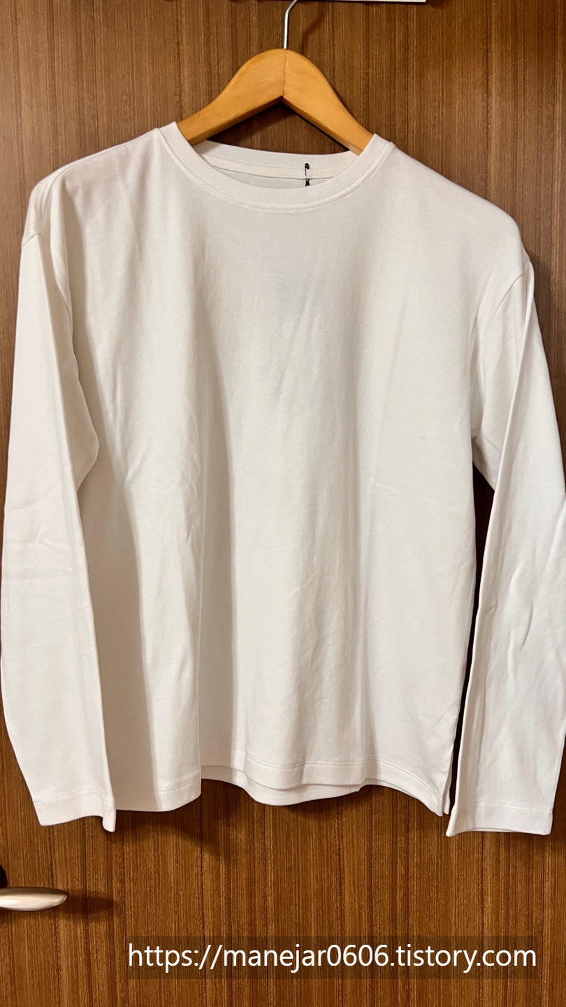 제가 신규가입으로 선택한 상품은 무신사 스탠다드 : 우먼즈 릴렉스드 크루 넥 긴팔 티셔츠(화이트)로 M size 1,990원 결제했습니다. 제일 기본티이지만 옆트임이 살짝 들어가 있어서 이너웨어로 활용하기 좋은 기본템이라서 구매했습니다. 실제로 원단도 좋아서 구매하길 잘했다는 생각했습니다.