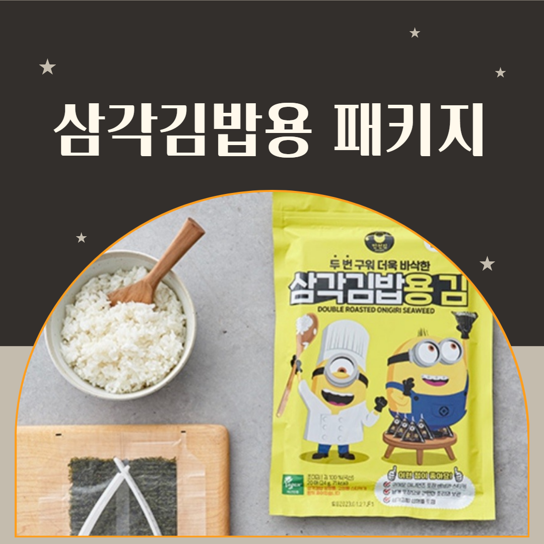 만전김 미니언즈 삼각김밥 패키니 너무 간편하고, 쉽게 삼각김밥을 만들 수 있어서 완전 좋았어요. 김도 바삭하고 눅눅하지 않아서 맛있어요. 다 사용하고 나면 삼각김밥용 김도 따로 구매가 가능해서 다음번 구매할 때는 김만 구매할려구요.  삼각김밥용 김 리필용 40매로 판매하고 있습니다.  현재 세일중으로 6,970원에 판매중입니다. 다양하게 이용할 수 있는 삼각김밥, 참치마요, 명란젓갈 등 속 재료를 내가 마음대로 넣어서 도시락 준비하기도 편하고 편의점 삼각김밥과 같은 편리함과 반찬이 따로 필요치 않음에 좋아요.