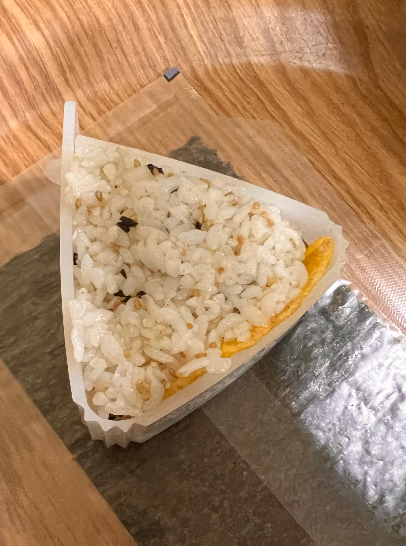 삼각김밥 패키지에는 플라스틱 삼각틀과 삼각김밥 포장지 20매가 함께 들어가 있습니다. 현재 세일중이고,  지퍼백으로 되어있어서 남은 건 포장하기도 편리합니다. 밥은 햇반 기본사이즈 2개 기준 : 4개의 삼각김밥을 만들 수 있습니다.  후리가케나 깨가루로 밥에 양념을 더했고, 계란지단을 만들어서 피자모양으로 만들어서 함께 넣어주었습니다.