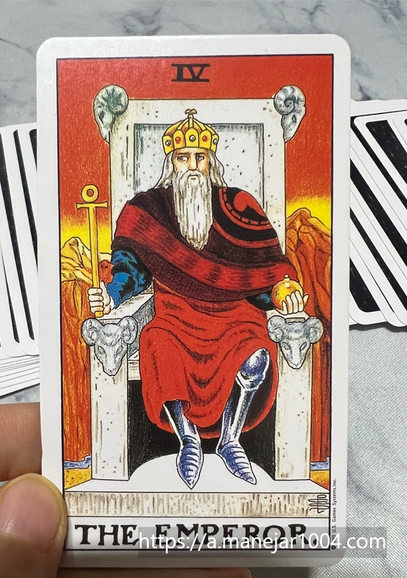 정방향으로는 능력자이며 긍정적 성격을 가지고 있습니다. 황제의 카드는 통치력과 방어, 동맹등의 수단이 좋습니다. 남에게 쉽게 꺾이지 않는 견고함도 가지고 있습니다. 완벽주의 성향으로 책임감과 리더쉽이 뛰어납니다. 항상 어떤 일이든 맞설 준비가 되어있습니다. 역방향으로는 의심이 많고 자기주장이 강합니다.